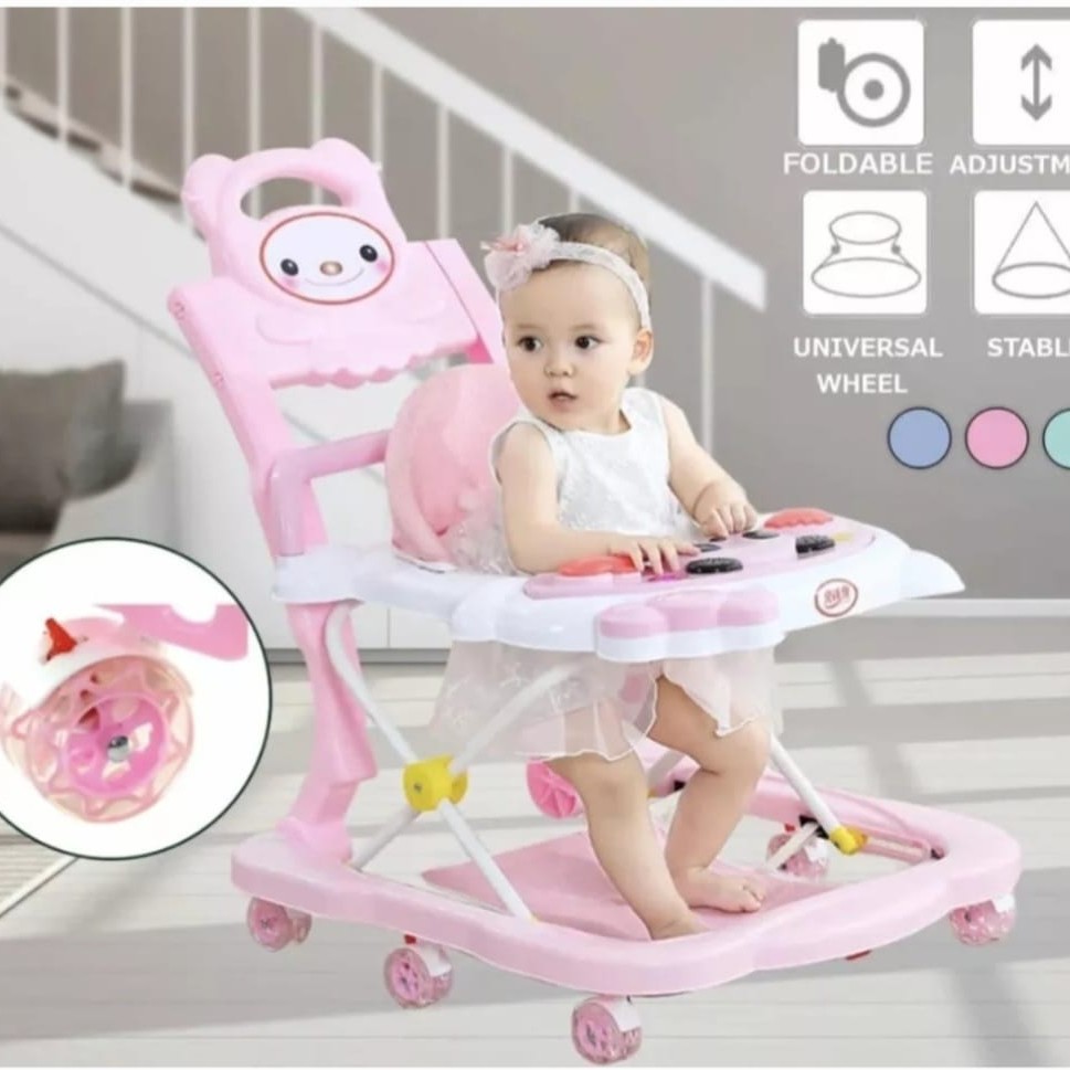 Presentamos el Andador Musical para Bebés Convertible 4 en 1, ideal para acompañar a tu pequeño en sus primeros pasos. Con su diseño atractivo, que presenta un adorable personaje de oso, este andador es perfecto para estimular el desarrollo motor y la curiosidad de los más pequeños. Su funcionalidad 3 en 1 permite adaptarlo a diferentes etapas y necesidades, brindando comodidad y diversión en cada uso.